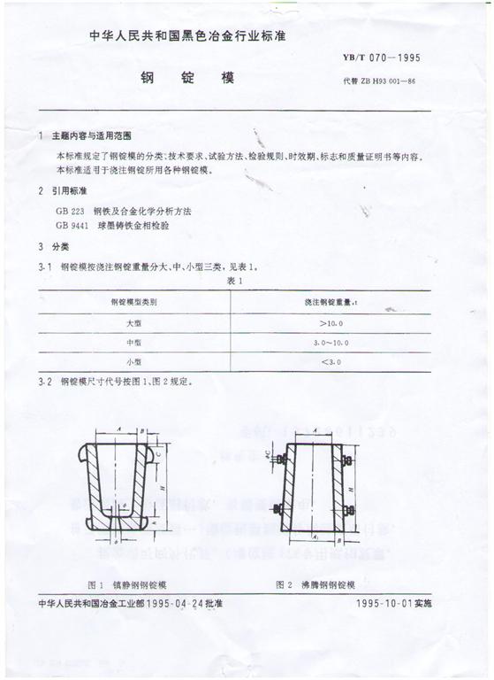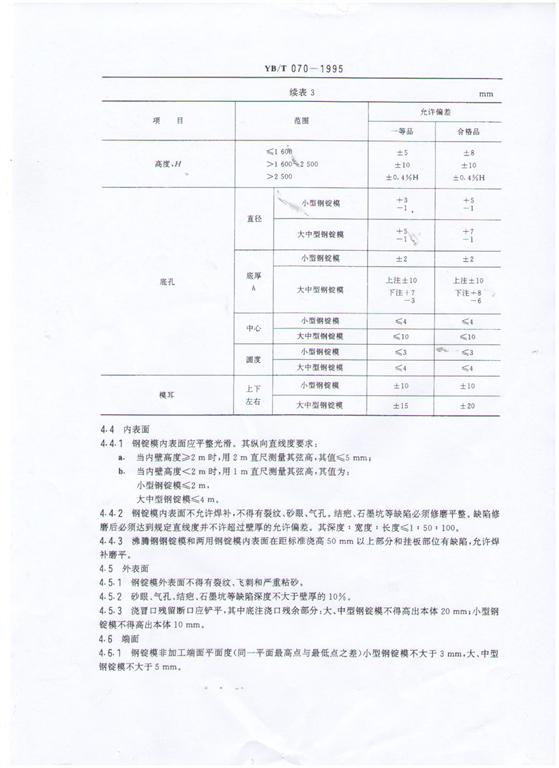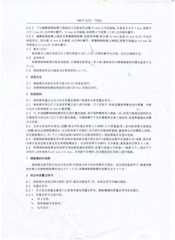 YB/T 070-1995鋼錠模生產(chǎn)標準-河鑄重工