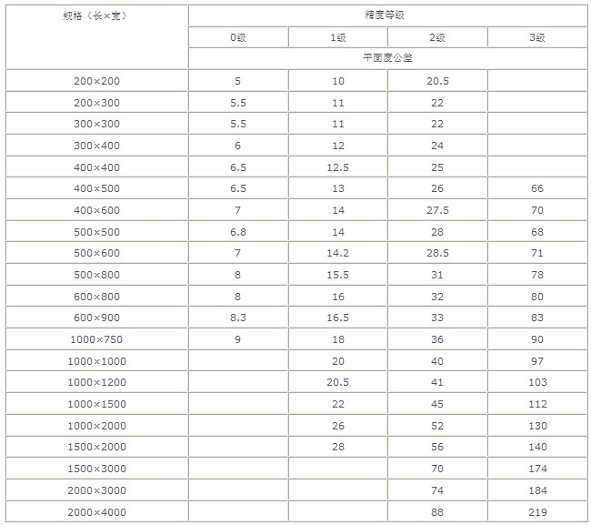 劃線平臺(tái)精度:按GB7947-1999標(biāo)準(zhǔn)制造,分為0、1、2、3級及精刨等級。